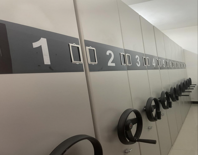 ? 根據(jù)現(xiàn)有檔案室空間大小,設(shè)計(jì)安裝了4組10列共40組密集架。每組密集架為6層雙面,每個(gè)區(qū)移動(dòng)邊列安裝柜門,每列都能密封關(guān)閉,確保了檔案室的保密性、防潮性和美觀性。