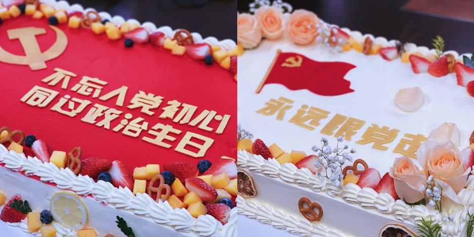 生日會(huì)上,支委會(huì)成員慷慨解囊定制了字樣為“不忘入黨初心,同過(guò)政治生日”、“永遠(yuǎn)跟黨走”的生日蛋糕,為過(guò)“政治生日”的黨員送上美好祝福,贈(zèng)送了政治生日賀卡。支部書記帶領(lǐng)全體黨員職工重溫了入黨誓詞,黨員們分享了自己的生日感言。