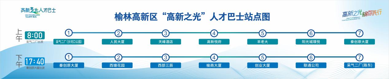 人才專線在路線的設(shè)置上充分考慮了創(chuàng)業(yè)者在高新區(qū)政務(wù)、交通、工作、生活等方面因素,共設(shè)7個(gè)站點(diǎn),北起采氣二廠,南至秦創(chuàng)原大廈,沿途經(jīng)過(guò)高新區(qū)的人民大廈、創(chuàng)業(yè)大廈、榆商大廈、榆林大劇院、秦創(chuàng)原大廈等地標(biāo)性建筑。