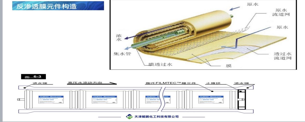 本次培訓(xùn)會(huì)特別邀請(qǐng)了藥劑廠家的技術(shù)員李保成擔(dān)任培訓(xùn)老師。結(jié)合我公司實(shí)際運(yùn)行情況,培訓(xùn)老師詳細(xì)講解了膜系統(tǒng)的基本知識(shí),包括反滲透原理、膜性能的影響因素、膜損傷與污染的原因、清洗方式與保存方法以及清洗過(guò)程中的注意事項(xiàng)等。為了讓參訓(xùn)人員更直觀地了解膜系統(tǒng),培訓(xùn)老師還現(xiàn)場(chǎng)展示了膜元件構(gòu)造圖。