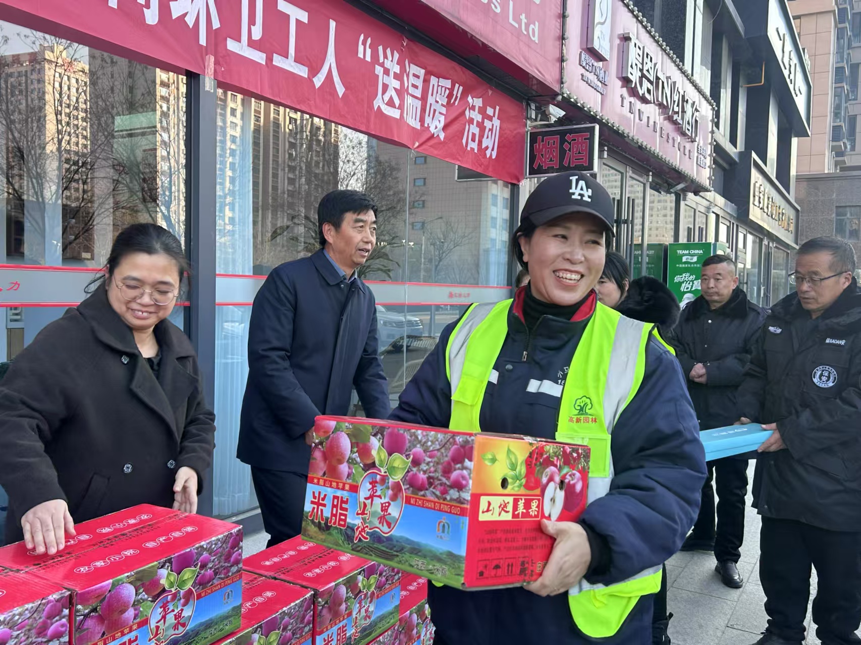 2024年12月24日下午,榆林市匯橋人力資源有限責任公司舉行向環(huán)衛(wèi)工人、保安“送溫暖”活動,為城市運營集團公司廣場公園92名一線環(huán)衛(wèi)工、保安贈送了蘋果、防寒服等慰問品。