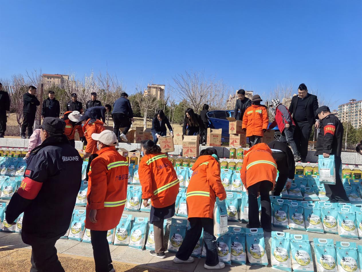春意盎然,情暖人間。3月31日上午,榆林市工商聯(lián)主席張修前攜手愛心企業(yè)山西憶清香酒業(yè)股份有限公司、陜西榮偉控股集團有限公司共同開展了“萬企興萬村 公益捐贈暖人心”愛心慰問活動,為城市運營集團公司榆溪河生態(tài)長廊環(huán)衛(wèi)工、保安等一線工人捐贈了米、油等生活應(yīng)急物資,用真情實意溫暖城市守護者,用實際行動詮釋社會責任、社會正能量。