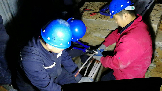 從2017年年底開始,污水處理廠辦公區(qū)電路出現(xiàn)間歇性的跳閘現(xiàn)象,電氣值班人員始終找不到具體原因,公司機(jī)電科檢維修人員對辦公區(qū)的跳閘原因進(jìn)行專項(xiàng)排查,通過詳細(xì)排查,認(rèn)真分析,最終確定故障原因?yàn)閺闹髯冸娬镜睫k公區(qū)并聯(lián)敷設(shè)的3根4*150+1*90的銅電纜其中的2根有接地現(xiàn)象,針對原因公司立即組織機(jī)電科員工對電纜進(jìn)行仔細(xì)排查,最終發(fā)現(xiàn)有一根電纜被擊穿,立即組織人員開始搶修工作,首先對餐廳用電使用發(fā)電機(jī)發(fā)電,確保所有職工按時(shí)用餐,直到下班之前搶修工作還在進(jìn)行中,只能要求所有電氣人員加班搶修,最終在大家的共同努力下電纜搶修工作順利完成。