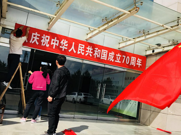 一是在綜合樓、氧化溝、維修間等懸掛“熱烈慶祝中華人民共和國成立70周年”的標(biāo)語營造歡樂、祥和、喜慶的節(jié)日氛圍,迎接國慶節(jié)的到來;二是在公司門口顯著位置懸掛國旗、辦公桌擺放國旗擺臺等,在公司積極營造喜氣洋洋的節(jié)日景象。