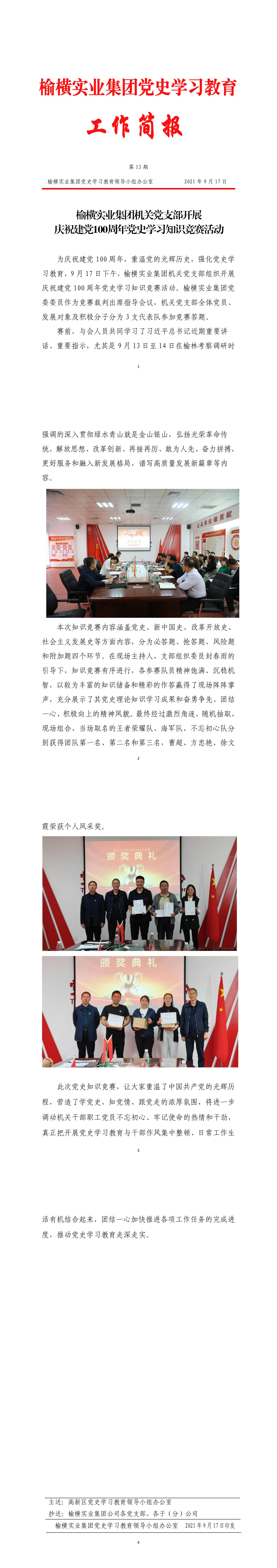 榆橫實業(yè)集團機關黨支部開展 慶祝建黨100周年黨史學習知識競賽活動