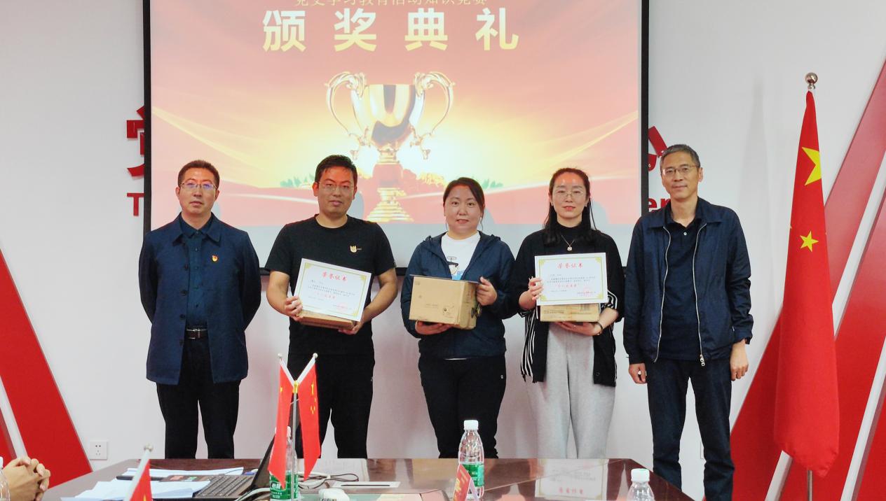 本次知識競賽內容涵蓋黨史、新中國史、改革開放史、社會主義發(fā)展史等方面內容,分為必答題、搶答題、風險題和附加題四個環(huán)節(jié)。在現(xiàn)場主持人、支部組織委員封春雨的引導下,知識競賽有序進行,各參賽隊員精神飽滿、沉穩(wěn)機智,以較為豐富的知識儲備和精彩的作答贏得了現(xiàn)場陣陣掌聲,充分展示了其黨史理論知識學習成果和奮勇爭先、團結一心、積極向上的精神風貌。最終經(jīng)過激烈角逐,隨機抽取、現(xiàn)場組合、當場取名的王者榮耀隊、海軍隊、不忘初心隊分別獲得團隊第一名、第二名和第三名,曹超、方忠艷、徐文霞榮獲個人風采獎。
