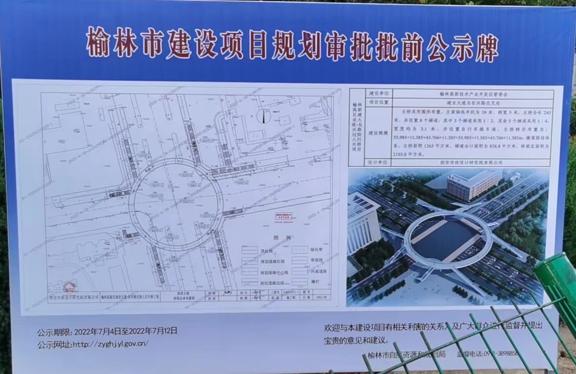 榆林高新區(qū)建業(yè)大道-長(zhǎng)興路過(guò)街人行天橋項(xiàng)目位于建業(yè)大道-長(zhǎng)興路平交口。項(xiàng)目東北角為榆林高新一中,周邊有萬(wàn)達(dá)廣場(chǎng)、博物館、展覽館等人流密集場(chǎng)所,周邊其他企事業(yè)單位和住宅小區(qū)也很密集。該路口行人橫穿馬路,人車混流,嚴(yán)重影響道路的通行能力和行人的安全。2020年榆林高新區(qū)管委會(huì)計(jì)劃啟動(dòng)該項(xiàng)目,具體由榆林高新控股集團(tuán)有限公司負(fù)責(zé)實(shí)施。