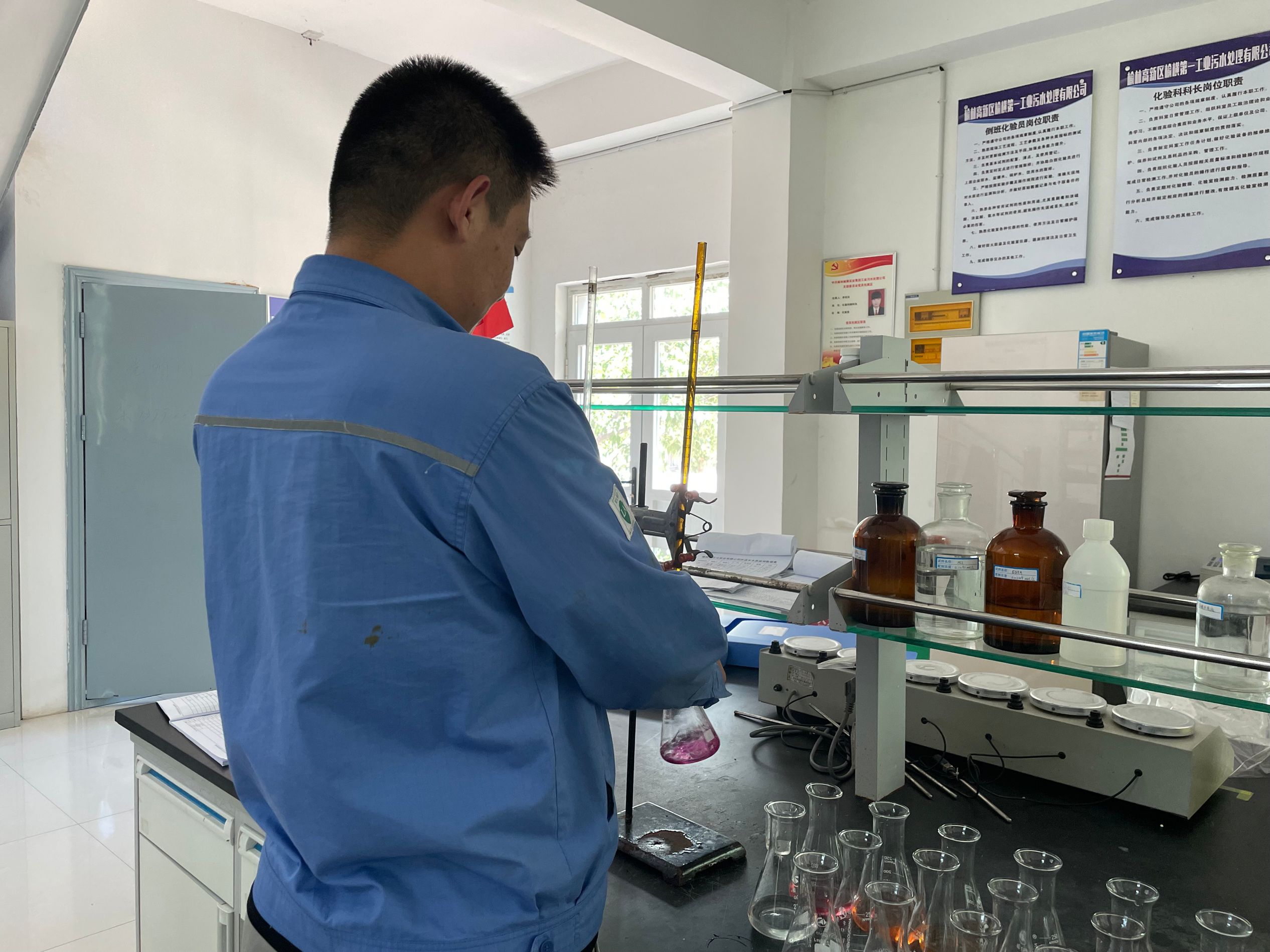 專項(xiàng)檢查開始前,副經(jīng)理侯繼珠對此次檢查重點(diǎn)進(jìn)行了說明,內(nèi)容包括水樣硬度、工業(yè)液堿濃度、現(xiàn)場氯化鎂溶液濃度的檢測。