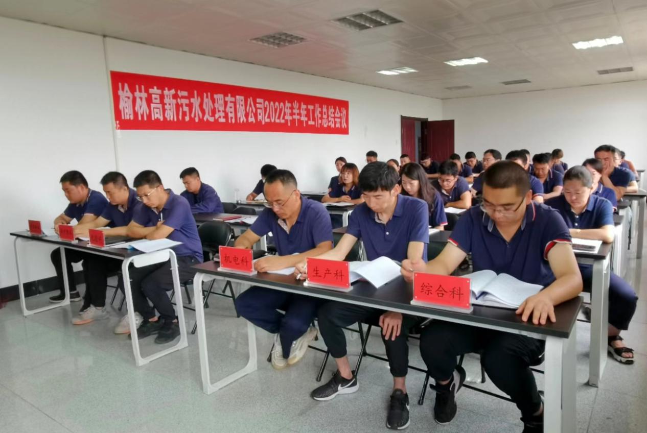 為全面總結(jié)和回顧上半年各項工作,認真分析存在的問題和不足,更好地謀劃部署下半年工作,確保圓滿完成年度目標任務(wù),8月11日上午,榆林高新污水處理有限公司召開了2022年度半年工作總結(jié)及下半年工作部署會議,會議由副經(jīng)理張彥青主持,經(jīng)理魚城郡在會上對2021年度工作做了全面客觀的總結(jié),對2022年上半年工作進行總結(jié)并安排部署了下半年工作,張彥青就半年安全工作做了總結(jié),公司全體員工參加了會議。